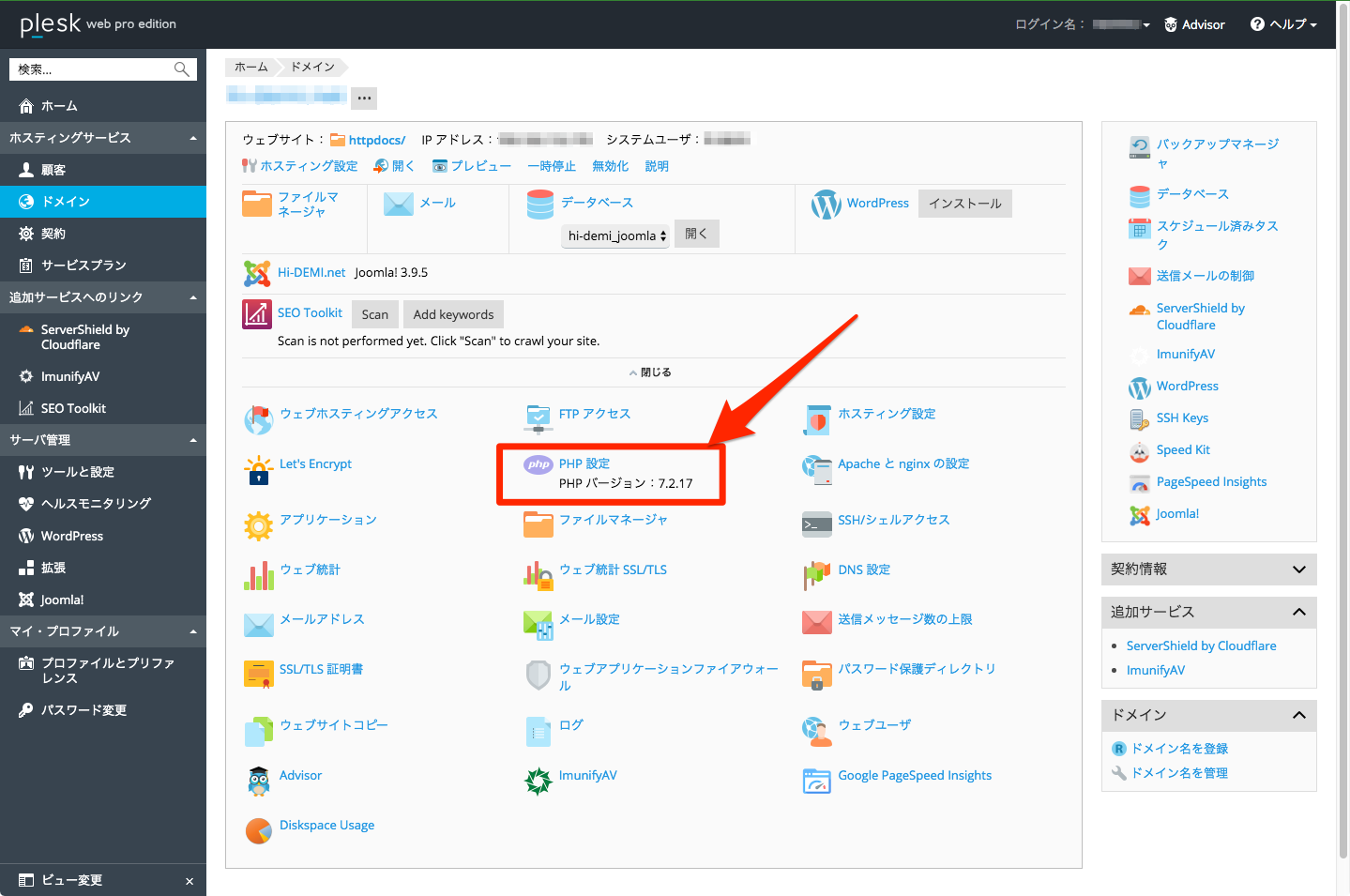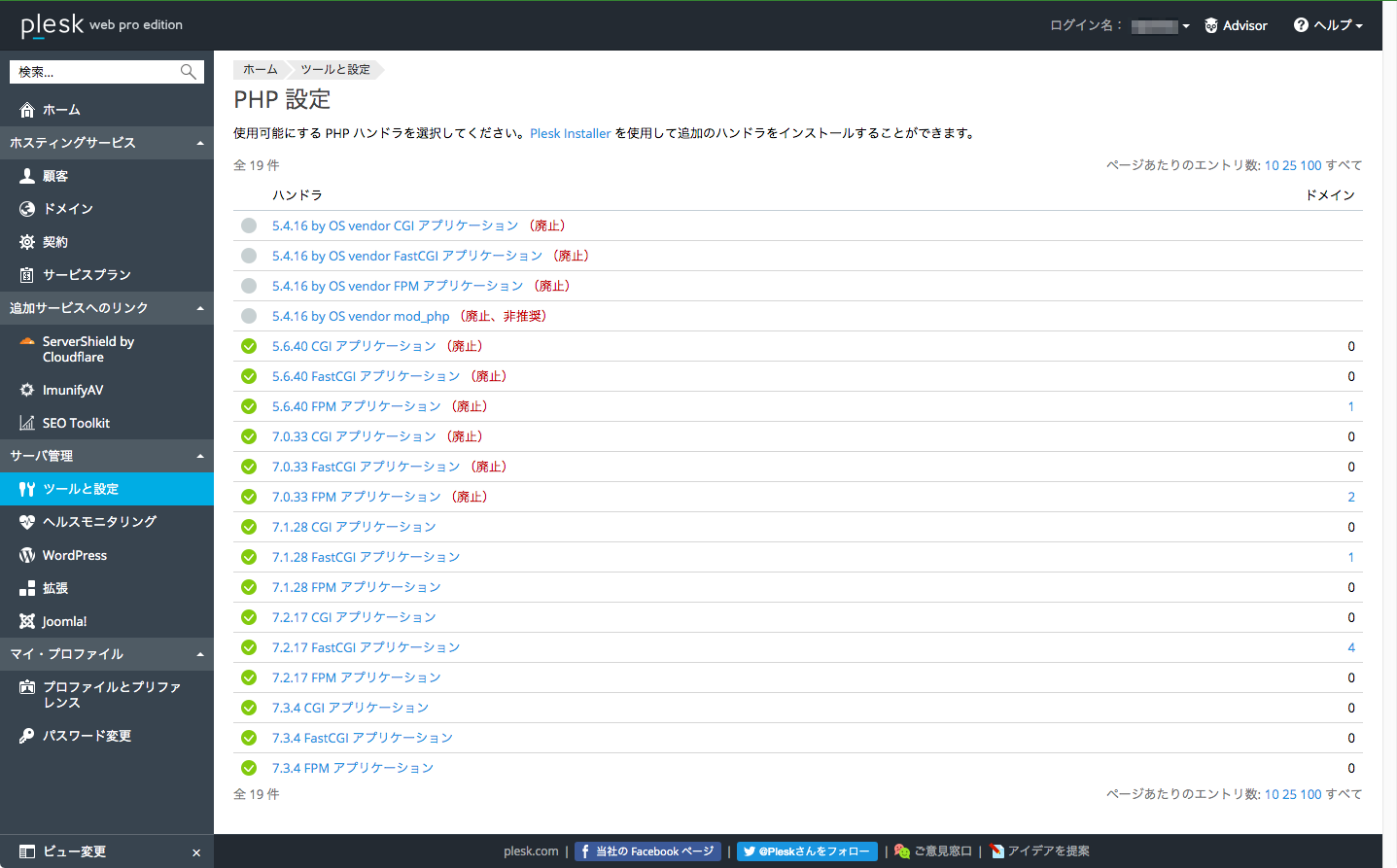 Plesk利用で重宝している機能の一つに異なるバージョンのPHPをドメインまたはサブドメインごとに簡単な切り替えです。