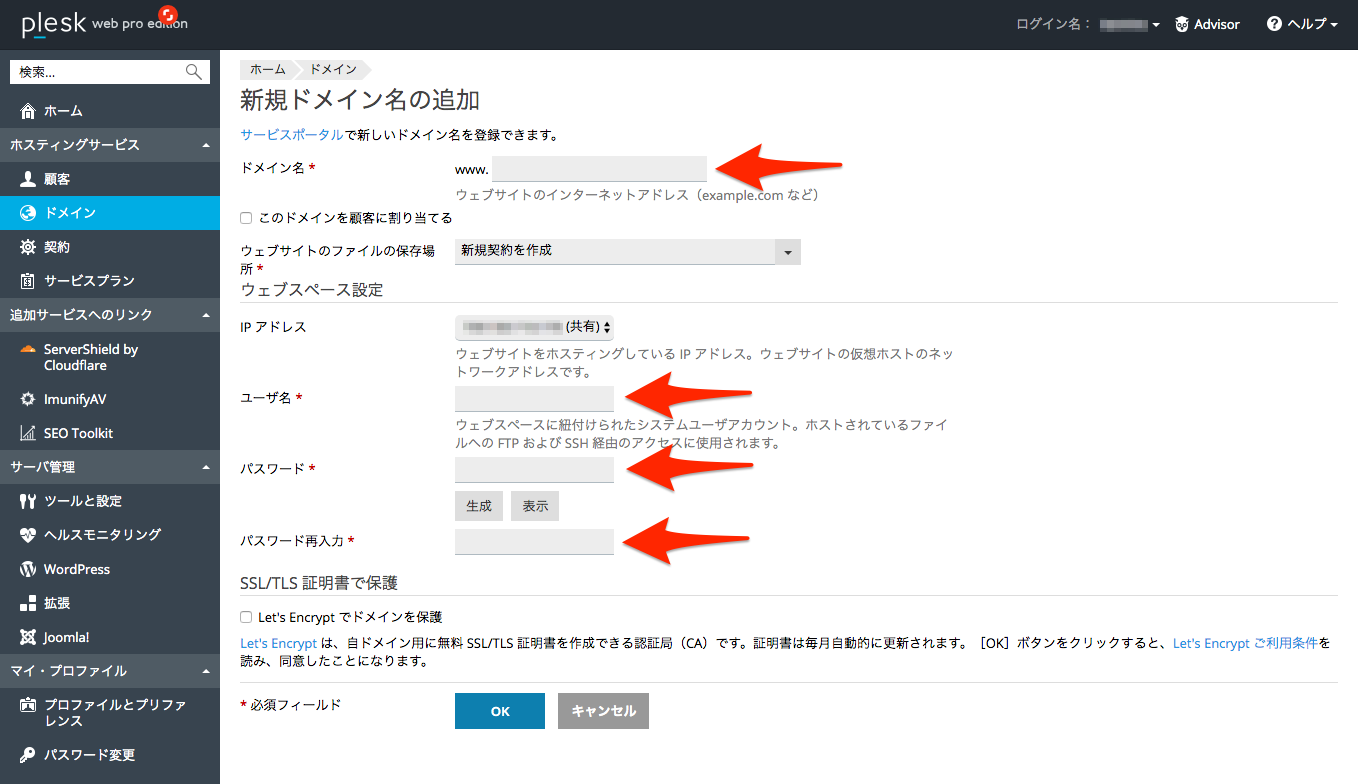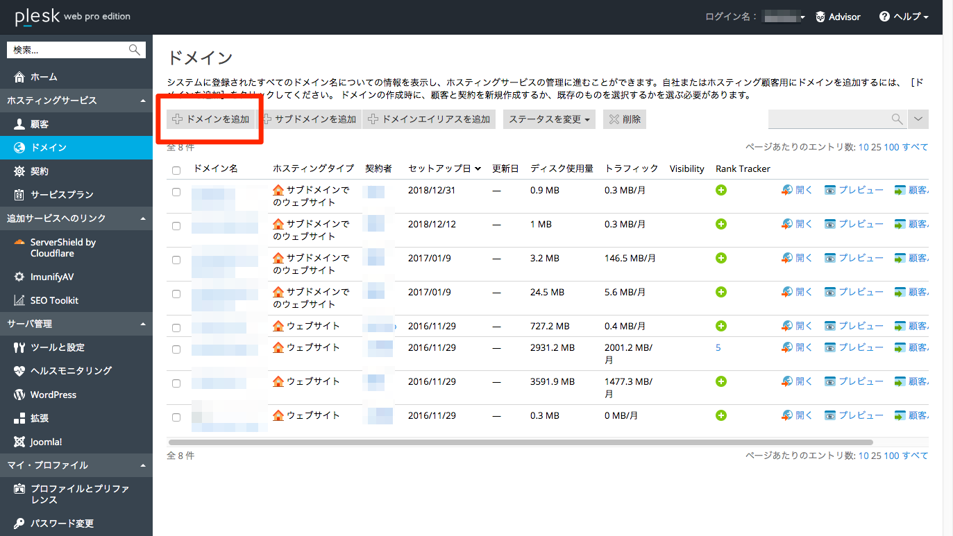 【注意】Plesk→ツールと設定に有る外部サービスの項目は利用しません。