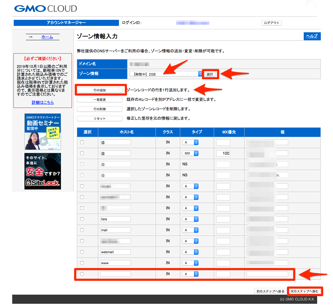 (取得済みのドメインにGMOのDNSサーバ設定を終了させておいてください。)